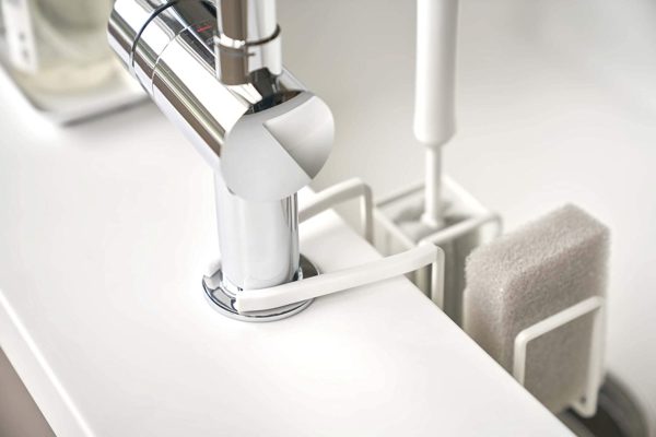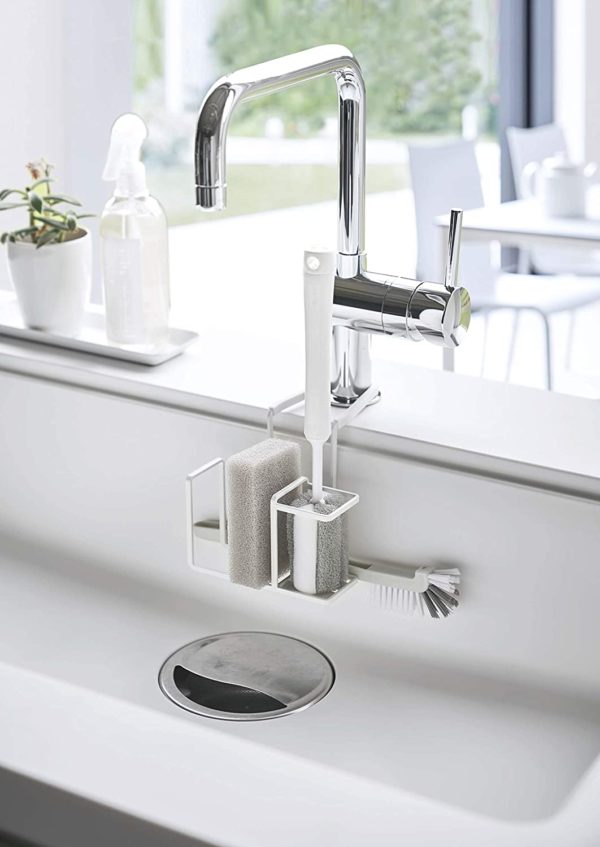 山崎実業(Yamazaki) 蛇口にかけるスポンジ&ブラシホルダー ホワイト 約W14XD7.5XH13cm プレート スポンジ置き スポンジラック ブラシスタンド 5082